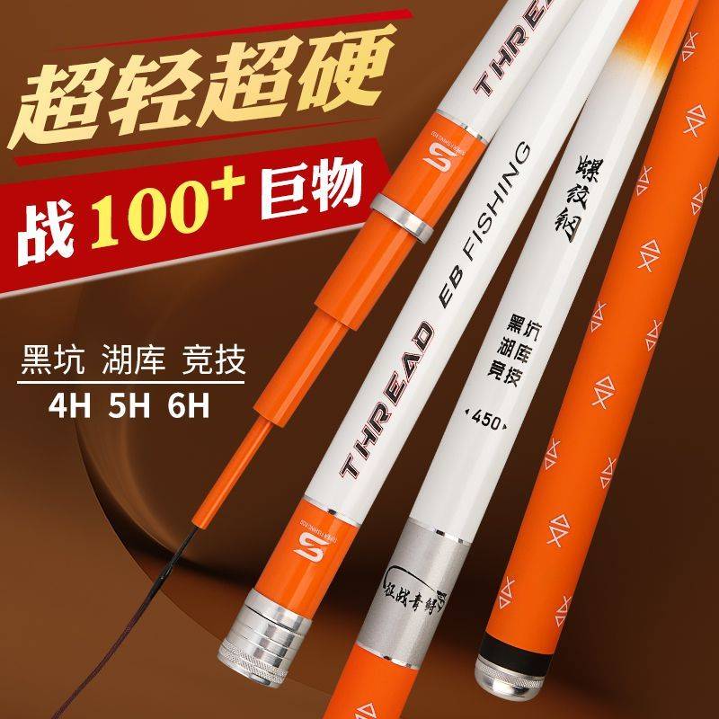 螺纹钢鱼竿19调6H长节手竿超轻超硬28调台钓竿碳素综合鲤竿钓鱼竿