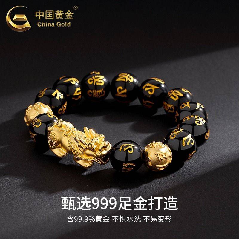 中国黄金貔貅手链男女六字真言999足金转运珠手链新年礼物送男友