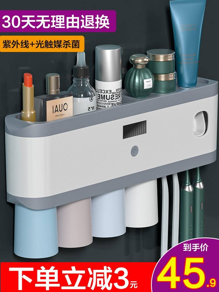 智能牙刷消毒器免打孔杀菌漱口杯架卫生间壁挂式电动牙刷架置物架