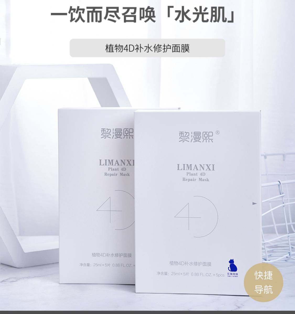 黎漫熙植物4D补水修护面膜收缩毛孔补水保湿清洁舒缓修护