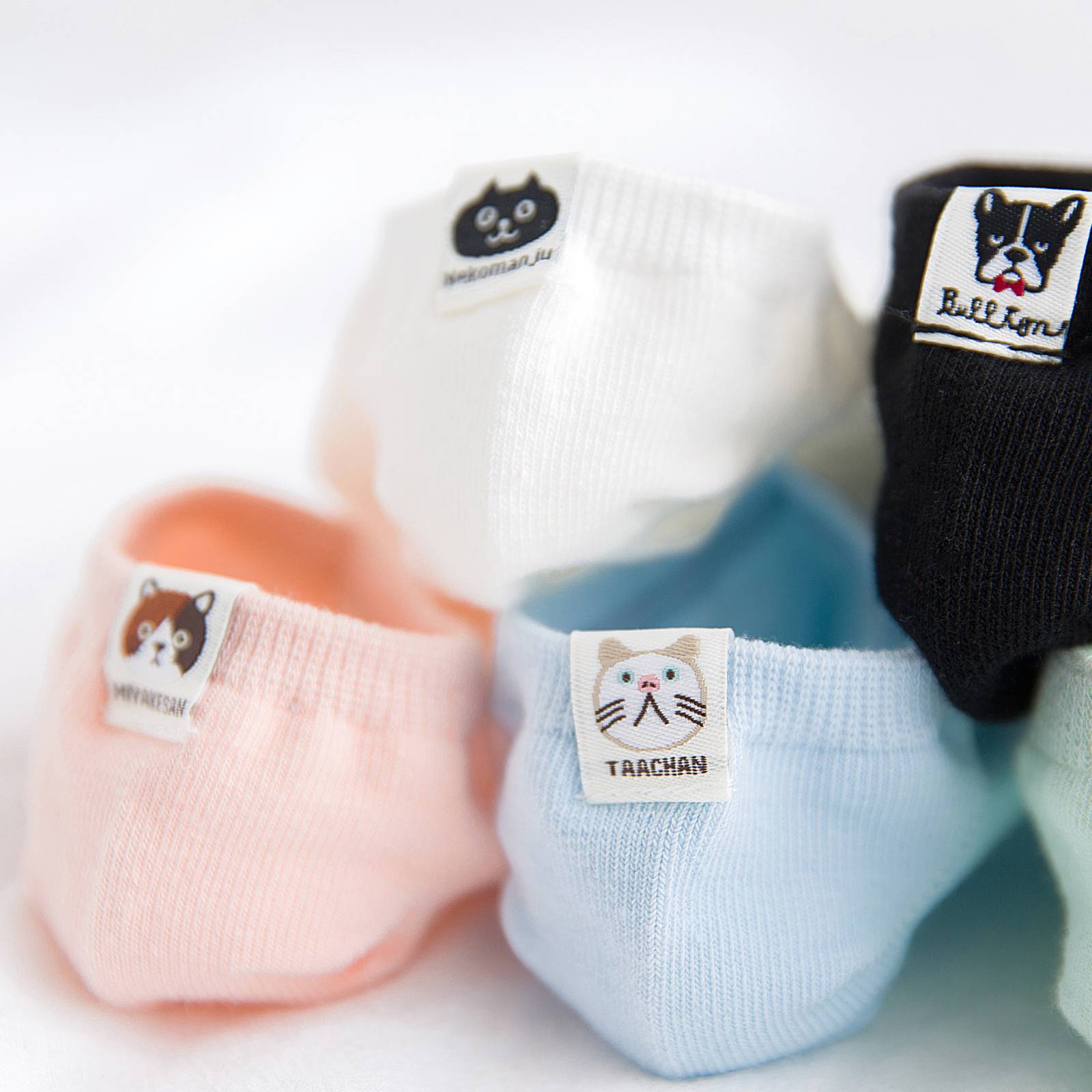 韩版纯色猫咪逗趣标签多色短袜情侣款超吸汗防臭2018新款