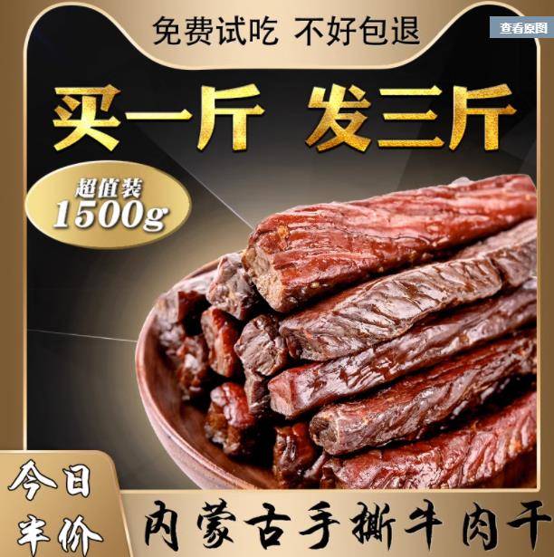 内蒙古风干手撕牛肉干500g*3斤包邮正宗真空独立香辣小吃零食特产