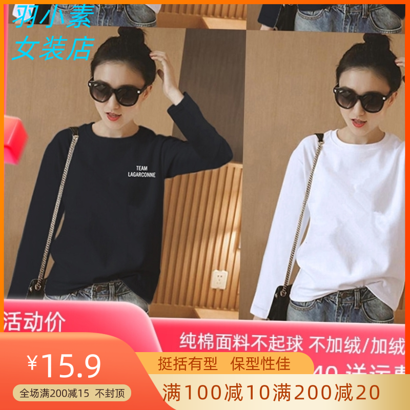 纯棉长袖t恤女白色打底衫2022春秋季新款女装内搭黑色上衣体恤潮