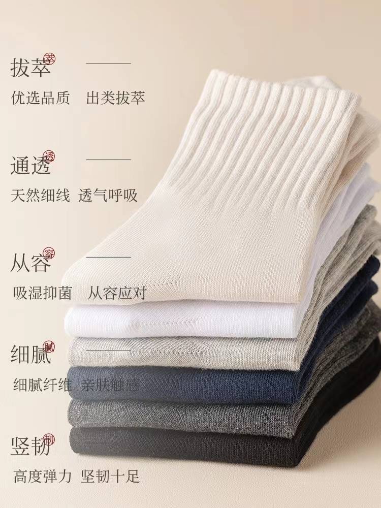 袜子男士中筒防臭吸汗黑白色短袜男生夏季薄款纯棉运动长袜