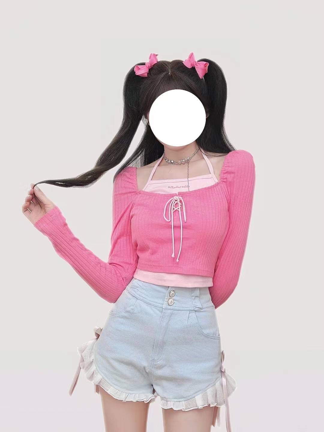 精致修身百搭舒适芭比系列粉色少女甜美精致气质公主套装