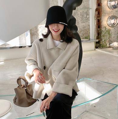 Ley 冬季潘德领巴素兰羊毛双面羊绒大衣小个子短款加厚毛呢外套女