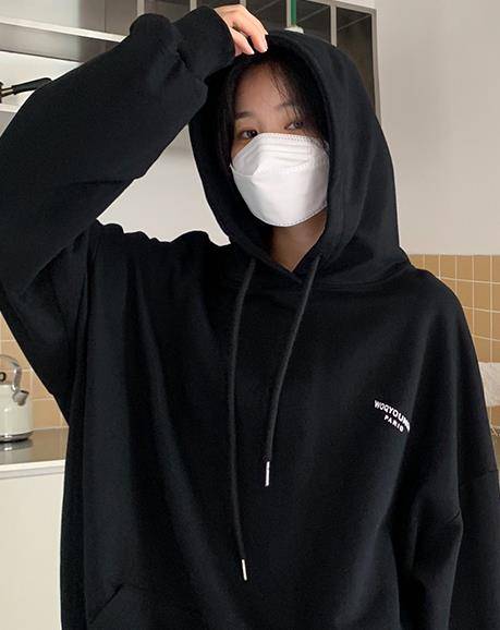 D YANGJUN 自制黑色连帽卫衣女秋季韩版慵懒宽松背后印花连帽上衣