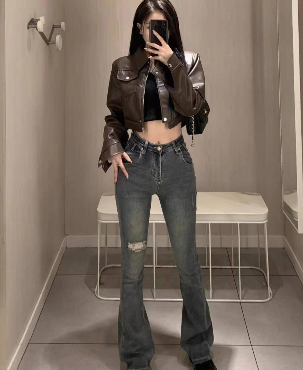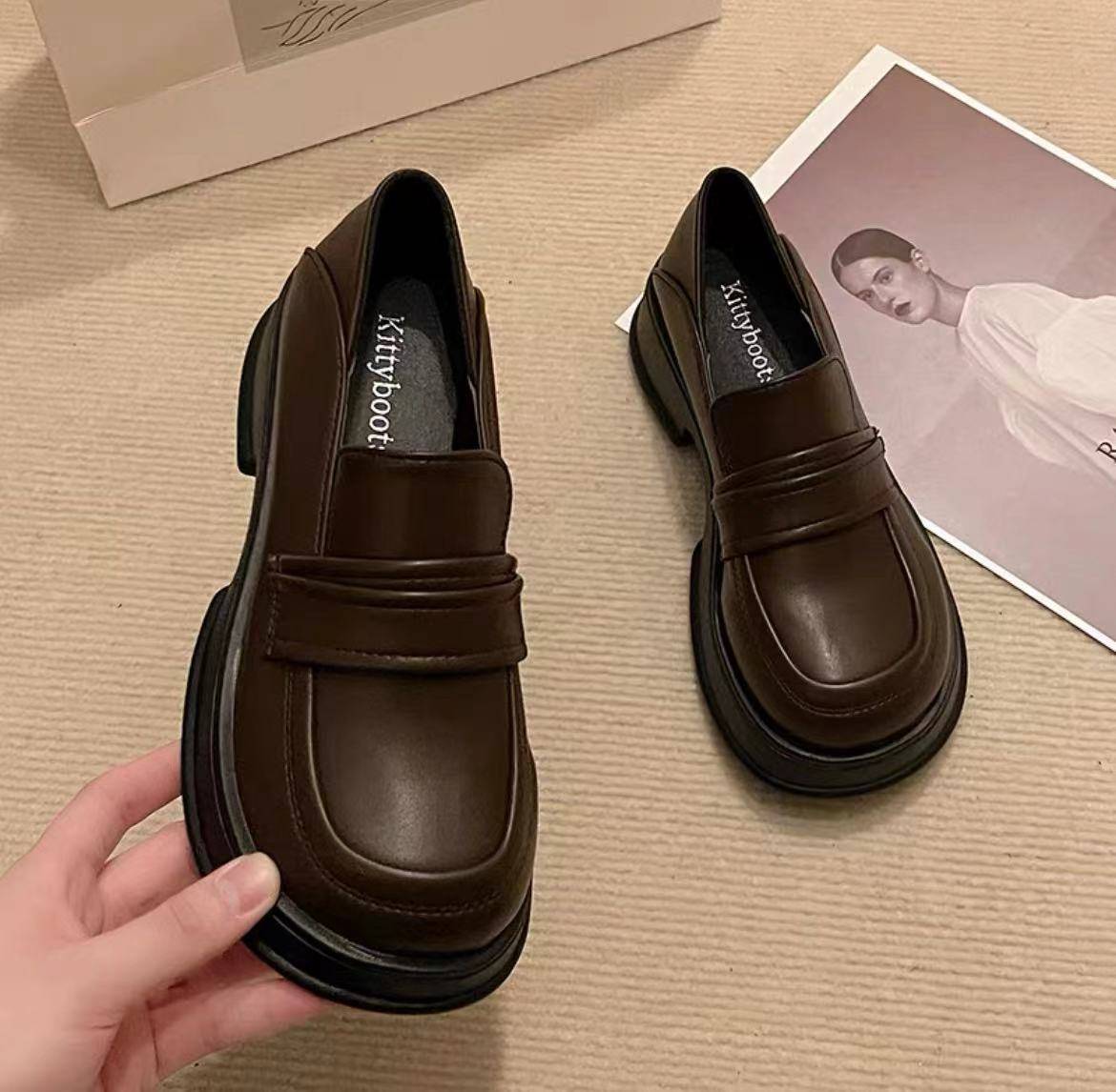 厚底2023年春夏季新款棕色黑色小皮鞋