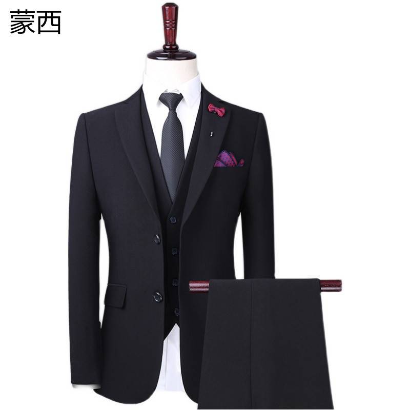 蒙西新款西服套装男商务职业正装版结婚西装男修身韩版外套三