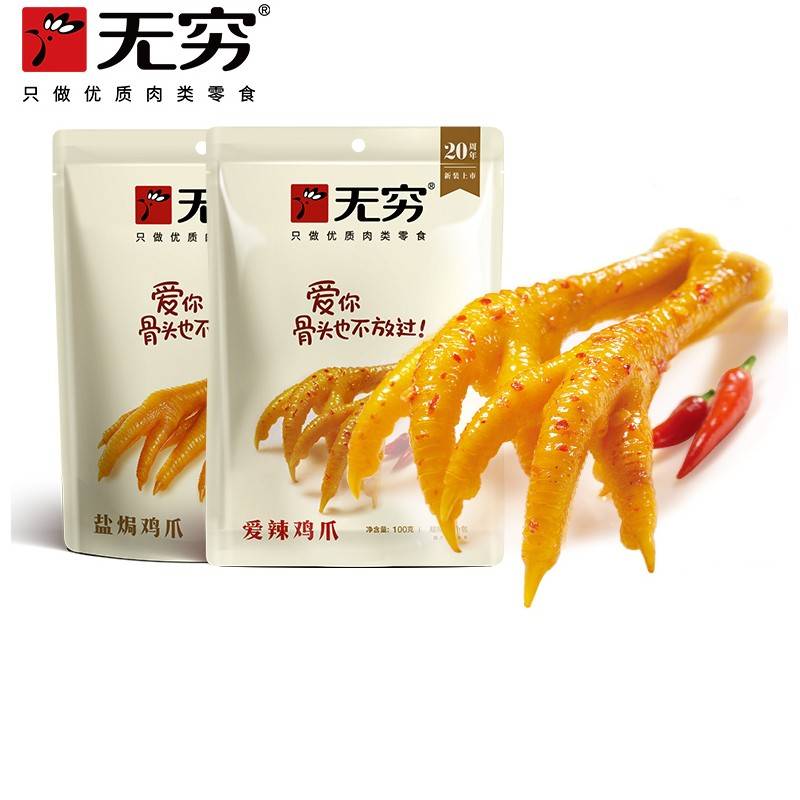 260g/盒【美味入骨】无穷爱辣鸡爪整盒20个/盒 不容放过骨硬耐啃严选老鸡