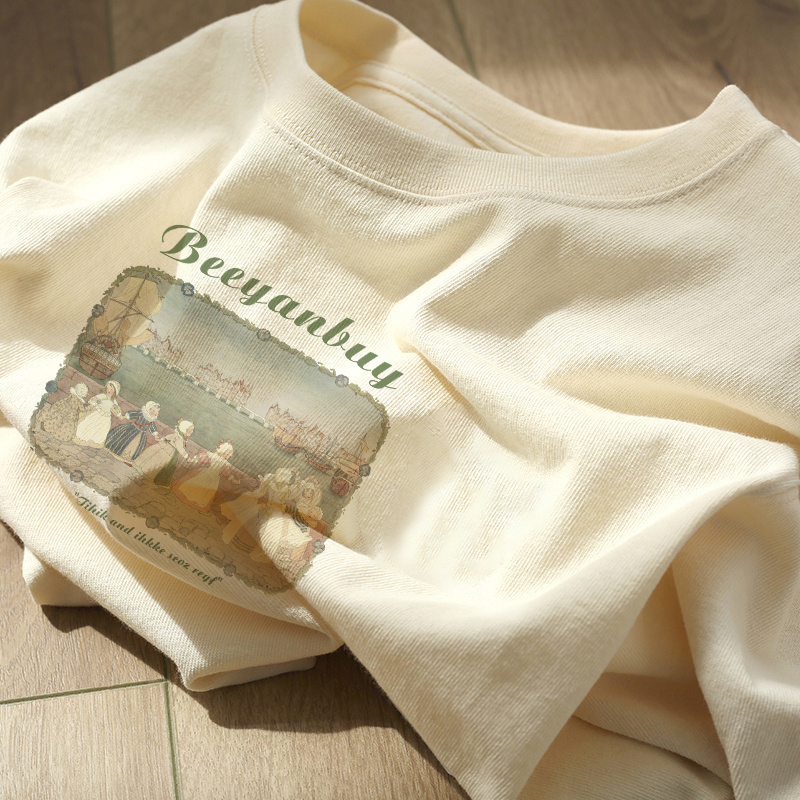 正肩短袖t恤纯棉半袖女夏季2023新款体恤衫冷淡系别致高级感上衣
