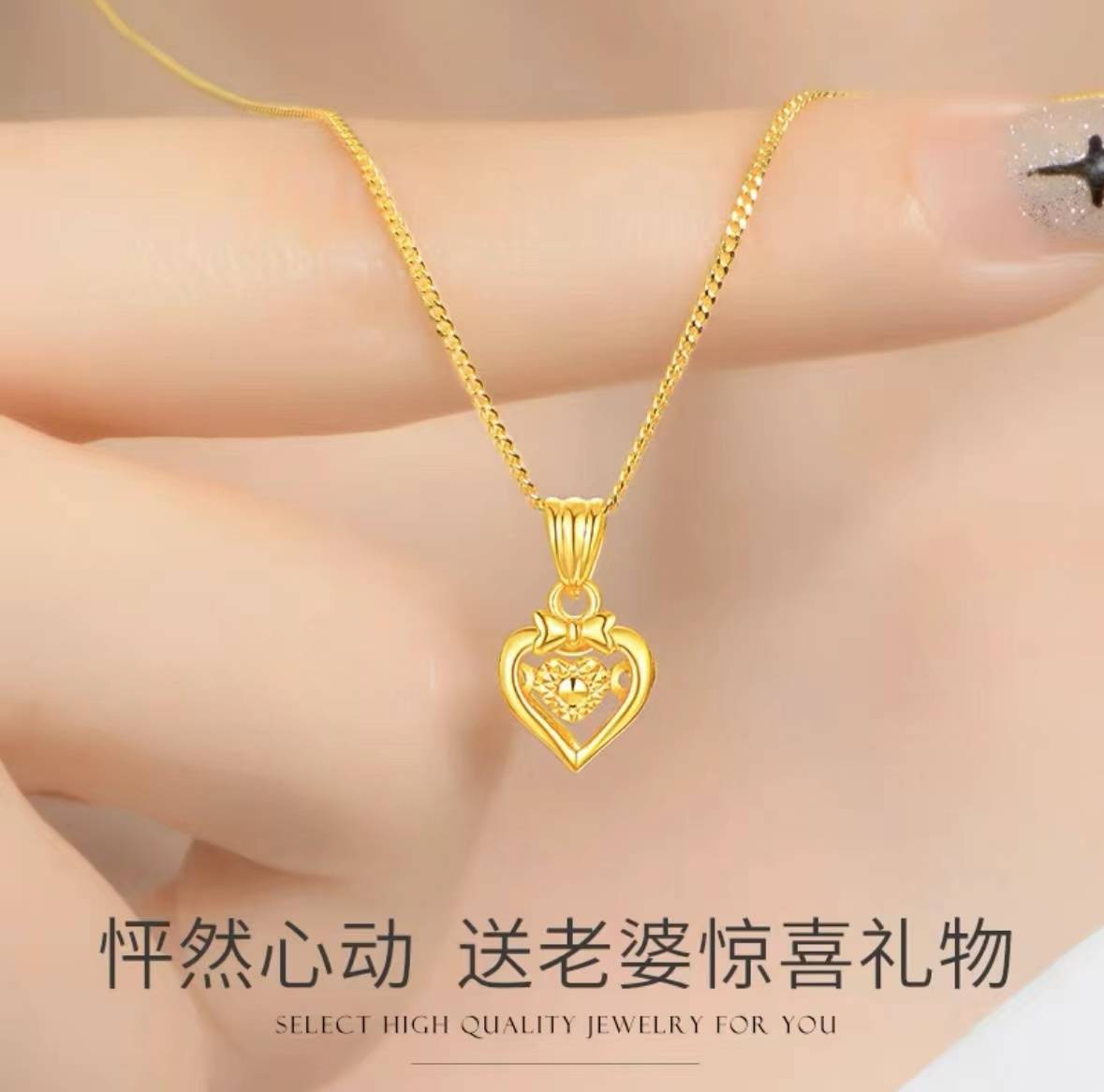 品季黄金项链女黄金吊坠爱心形套链灵动999足金细送女友生日礼物