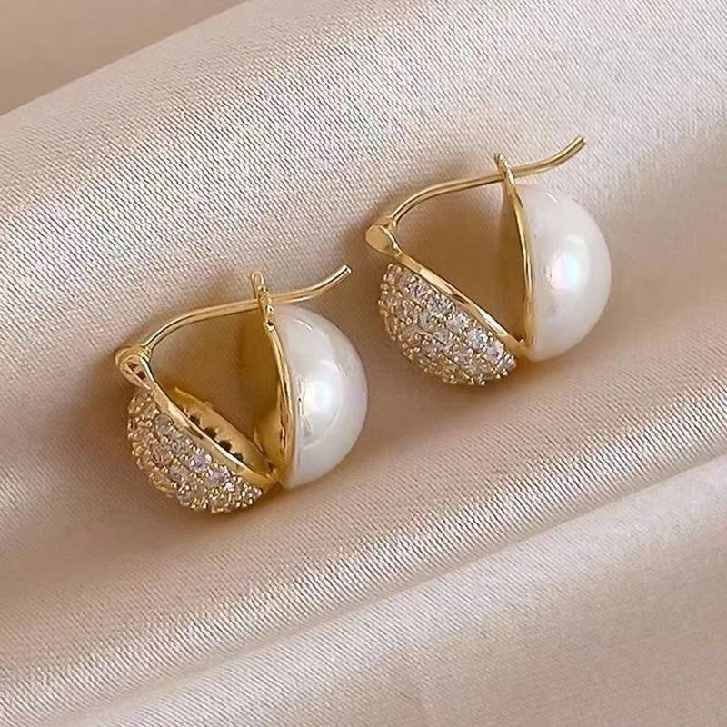 新款高级设计感双面珍珠锆石耳环女轻奢小众百搭气质耳钉耳饰