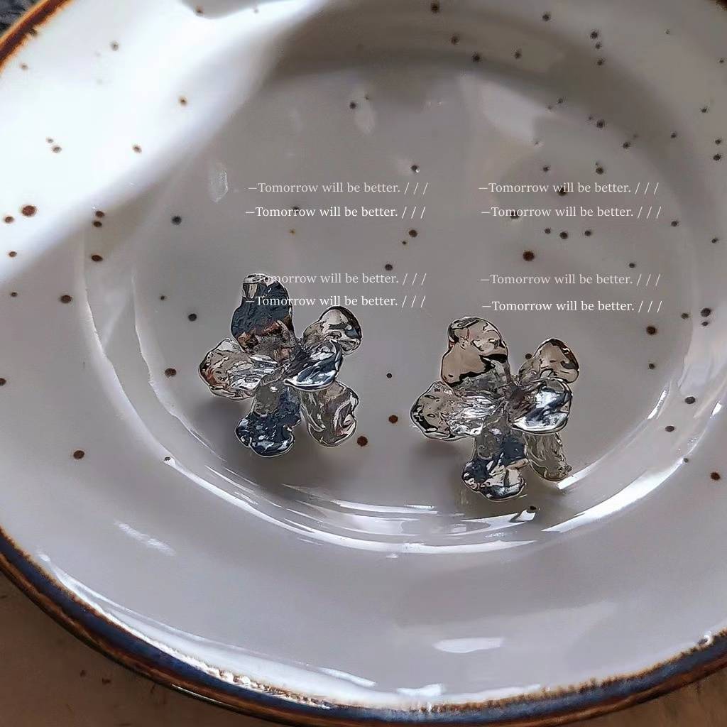 冷淡风不规则立体金属花朵耳钉女日韩新款潮时尚气质耳环耳饰品