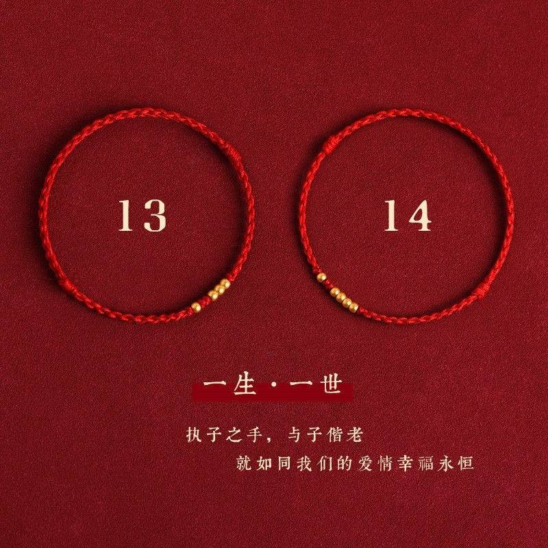 红绳手链一生一世1314古法沙金转运珠手工编织爱情闺蜜情侣手绳款