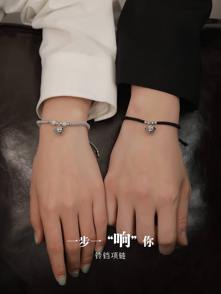情侣手链一对男女款原创设计感小众纯银编织铃铛 一步一响手绳夏