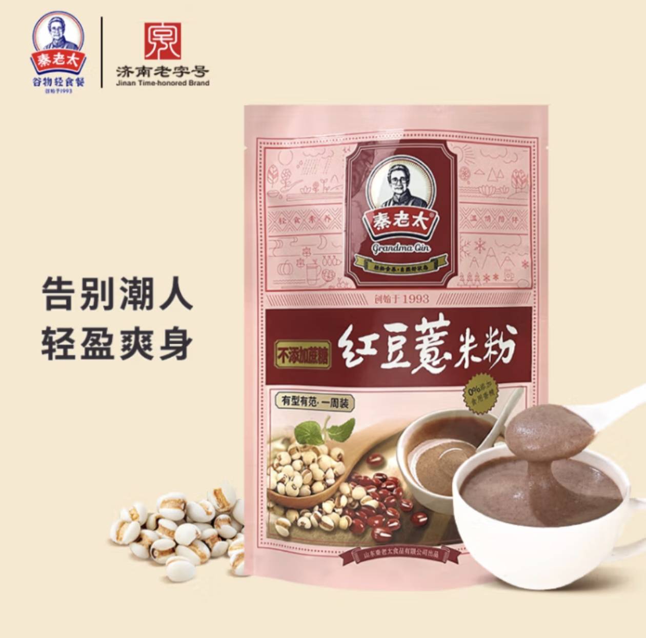 秦老太红豆薏米粉赤小豆薏仁粉 山姆平替款芡实五谷早餐代餐粉老字号 210g红豆薏米粉不加糖款
