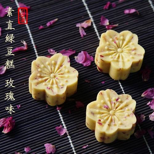 素直玫瑰绿豆糕 鲜花饼颜值茶点传统点心手工美食绿豆饼休闲零食