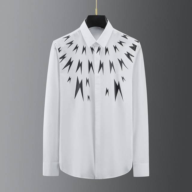 流行潮牌走秀新款胸前闪电压胶印花高端衬衫男装长袖