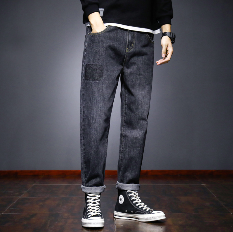 牛仔裤男式宽松直筒港风潮流九分裤子2021青少年秋季阔腿休闲男装