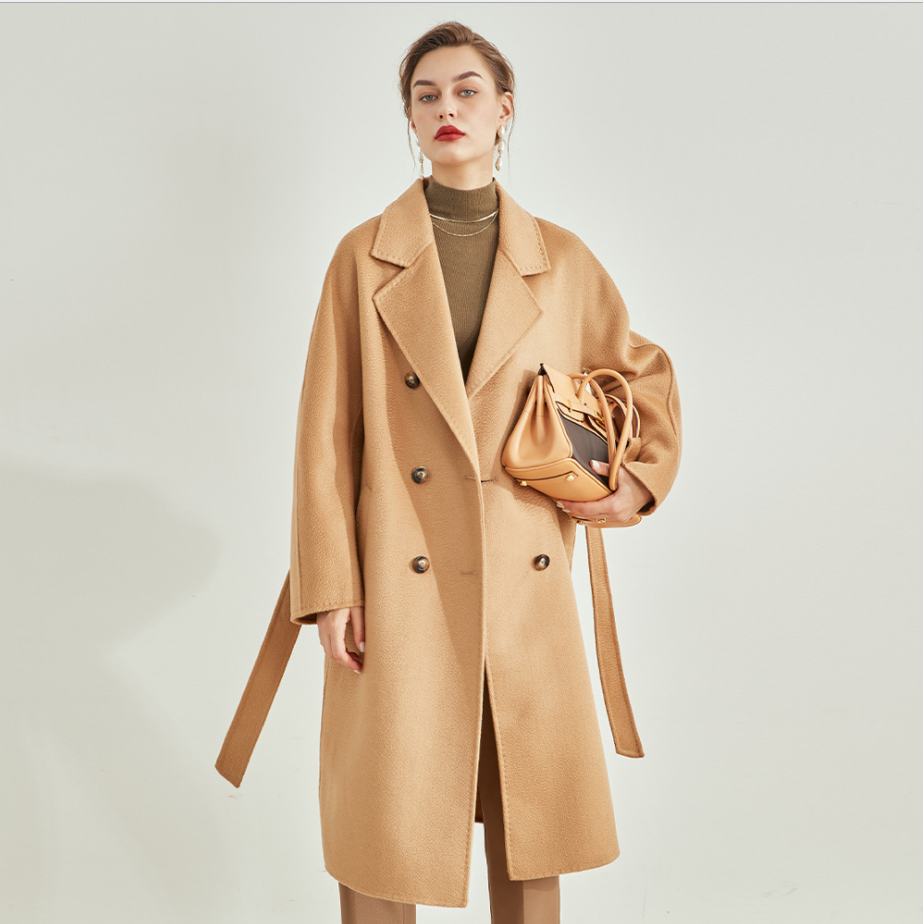 20%羊绒MAX家水波纹双面羊绒大衣女羊毛风衣