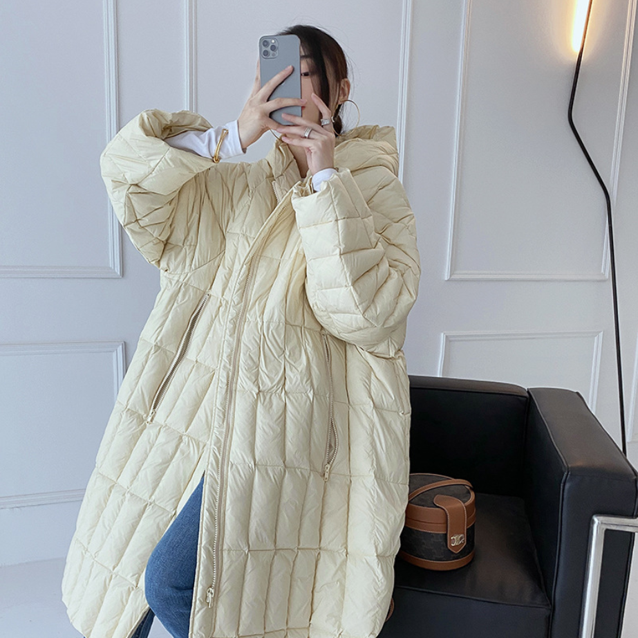 2021秋冬新款女oversize宽松廓形长款轻薄连帽羽绒服