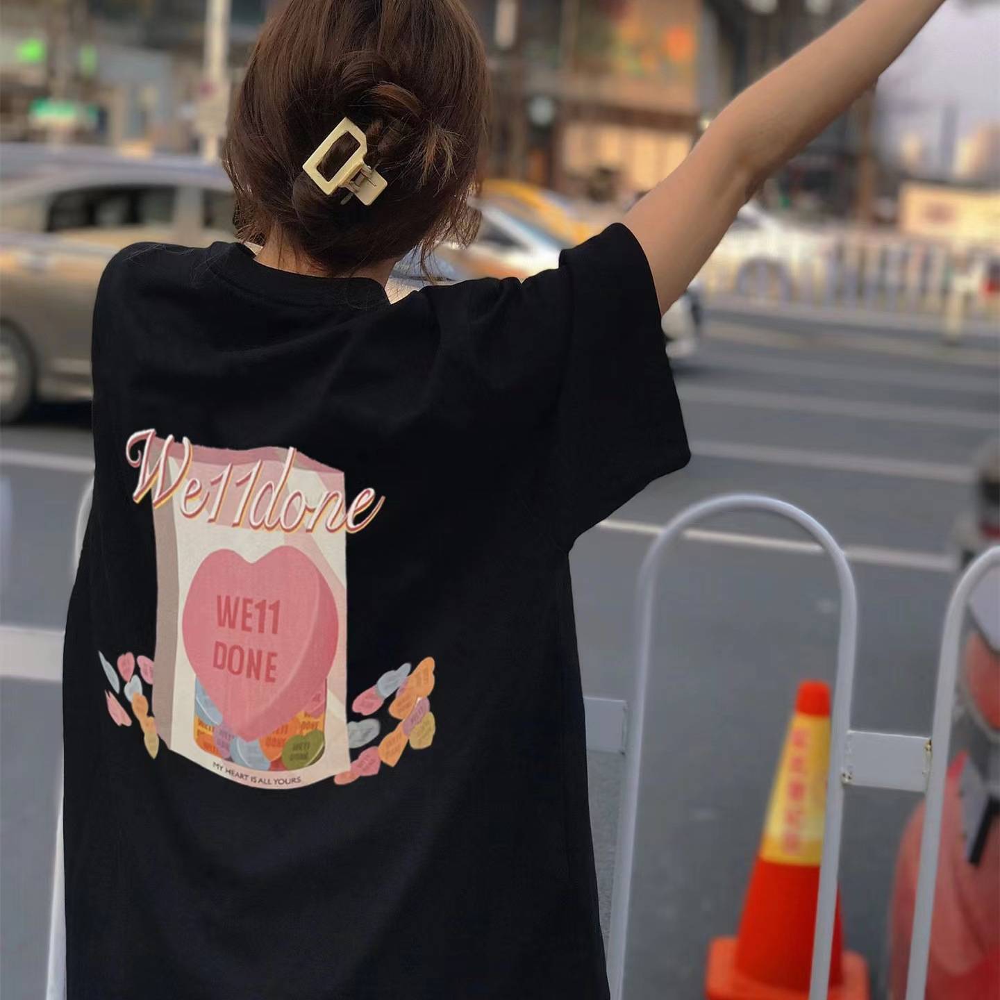 2023年春夏新款WE11DOME后背爱心时尚潮流宽松圆领男女情侣T恤