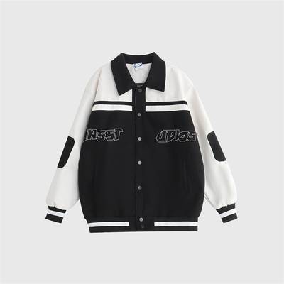 INSstudios 皮拼色翻领棒球服自制国潮情侣美式复古短款夹克外套