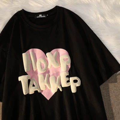 WEYWOT 夏季发泡爱心短袖T恤男女潮流宽松情侣百搭盐系半袖上衣
