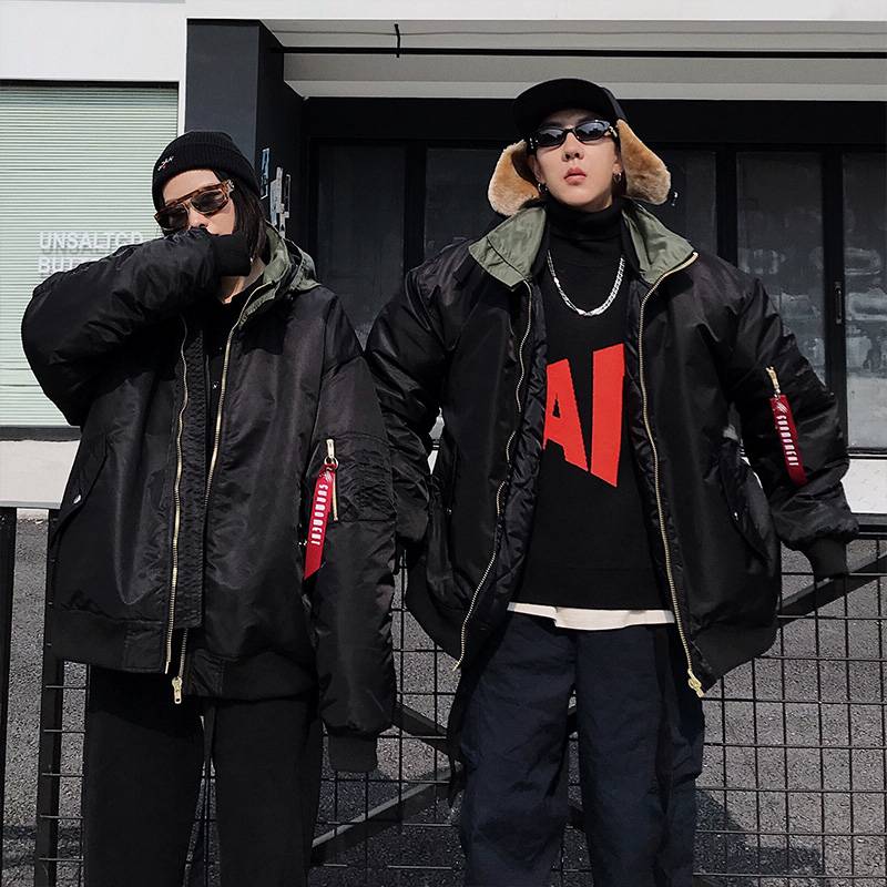 A神不在纽约 字母黑绿拼接撞色加厚棉服外套宽松MA1夹克SuaMoment