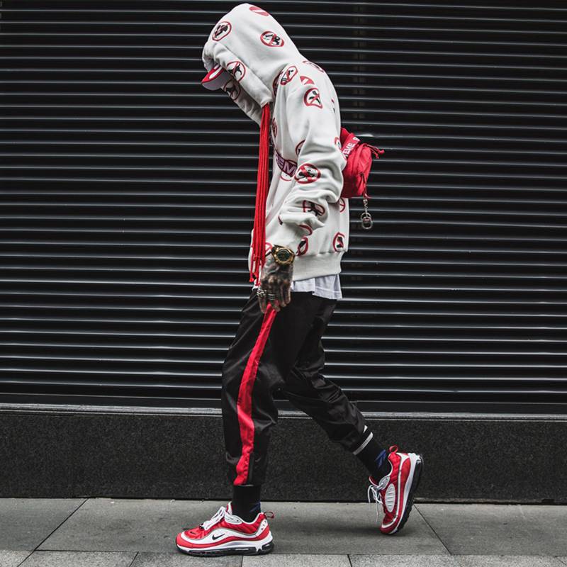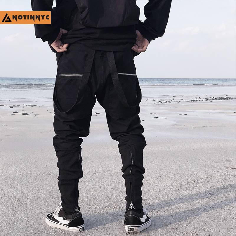 A神不在纽约 潮牌机能暗黑多拉链拼接背带长裤萝卜裤男束脚裤MAMC