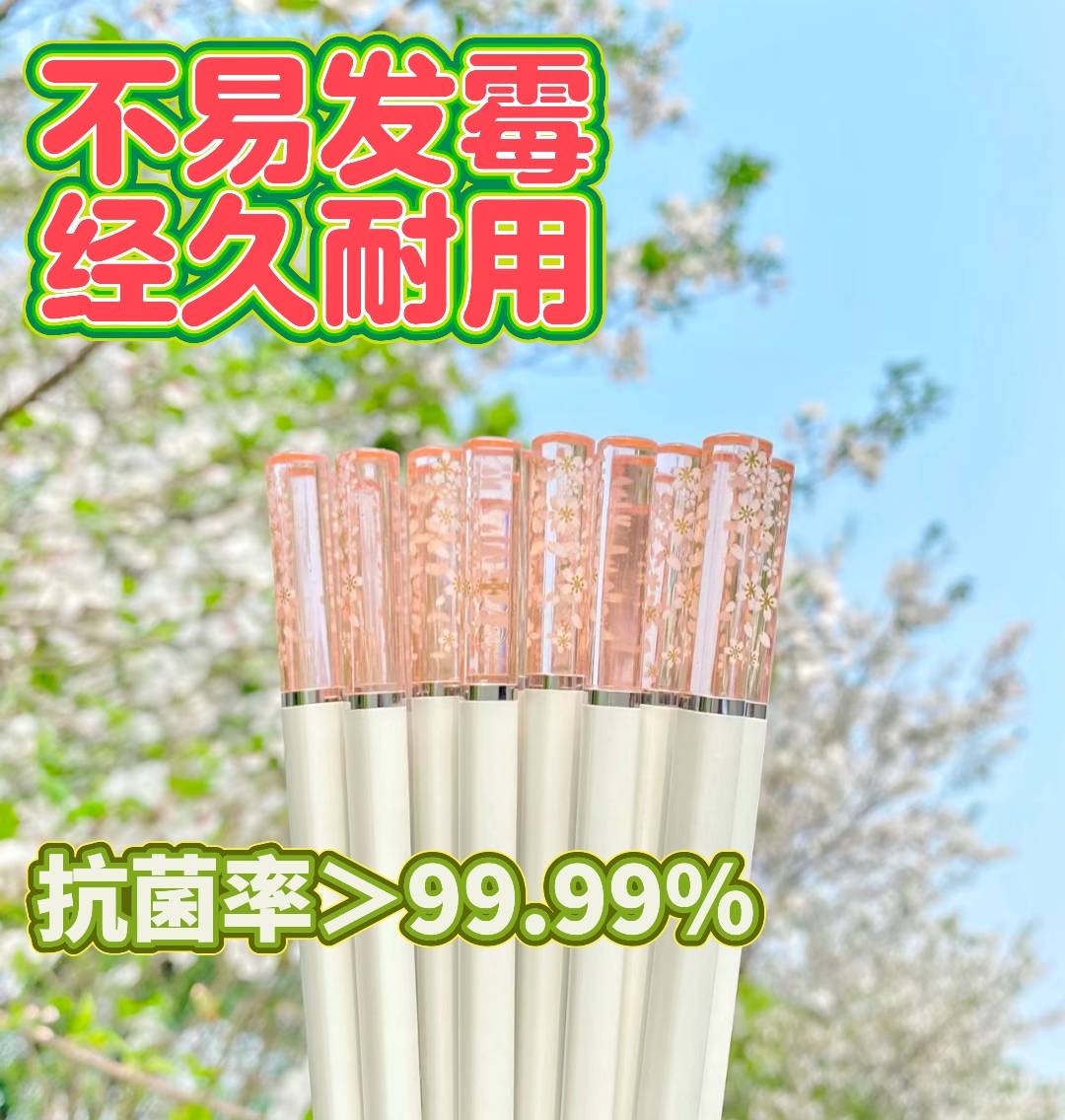 2024食全食美筷子家用琥珀樱花合金高档抗菌耐高温食品级高颜值合金筷