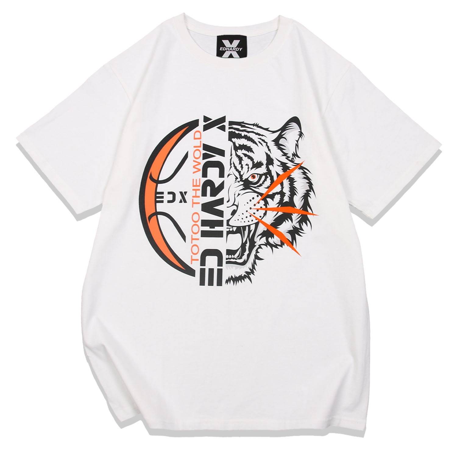 夏季潮牌虎头图案印花街头圆领纯棉短袖T恤男女同款体恤