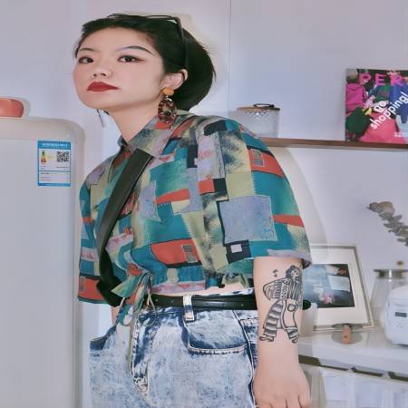 化学少女短复古衬衫女夏季宽松设计感小众短款衬衣