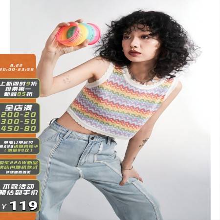 化学少女短糖果色无袖上衣女夏波浪花边外穿短款背心