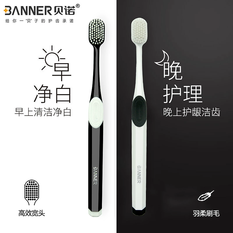 贝诺软毛宽头牙刷 成人家庭用组合装超细超软细毛 敏感牙龈防出血