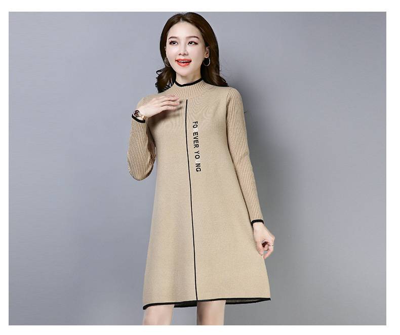 2018秋冬新款女装半高领套头毛衣女纯色长款针织衫宽松毛衣裙女