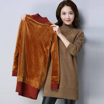 加绒加厚中长款毛衣女 2018秋冬新款女装毛衫 宽松套头针织打底衫
