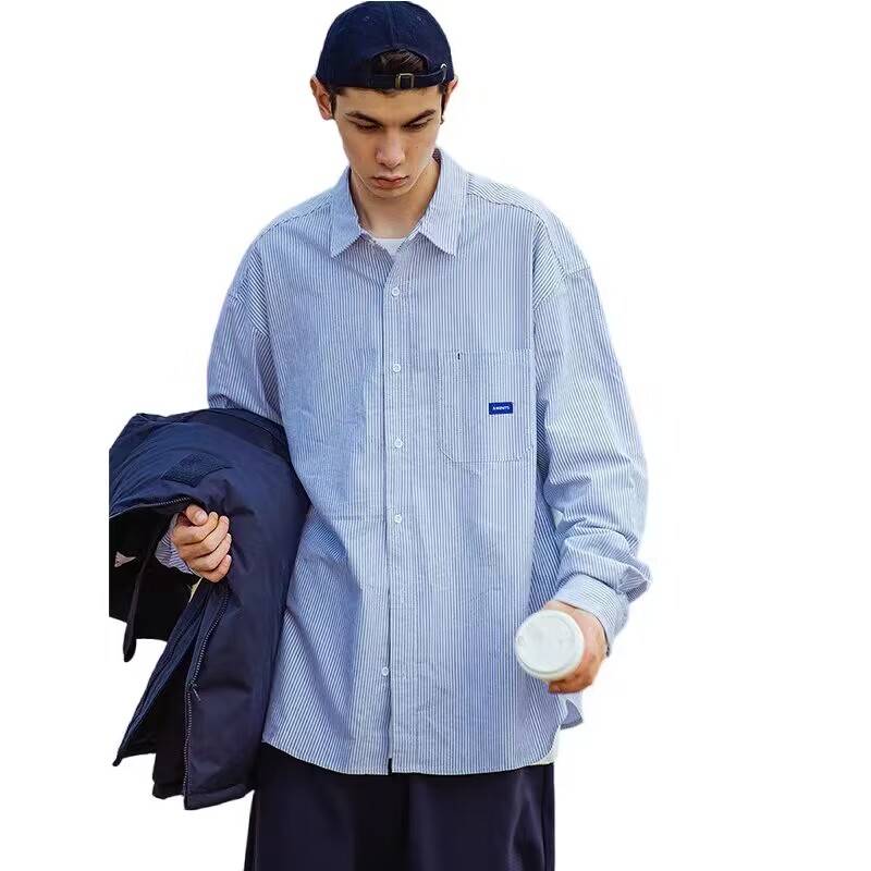 city boy日系长袖条纹衬衫休闲宽松情侣装