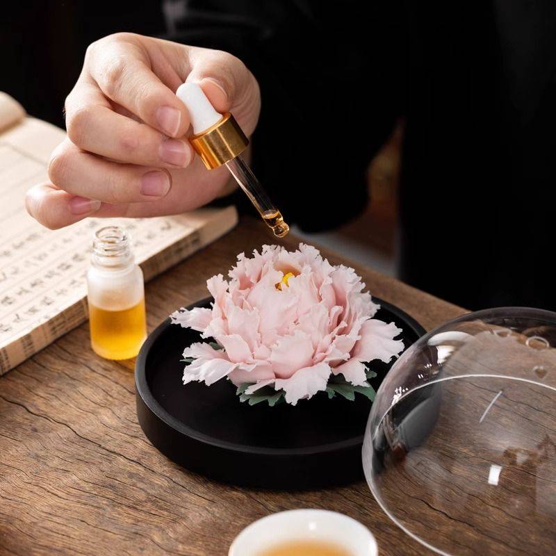 高级景德镇纯手工陶瓷手捏牡丹瓷花摆件扩香器家用送礼送老师
