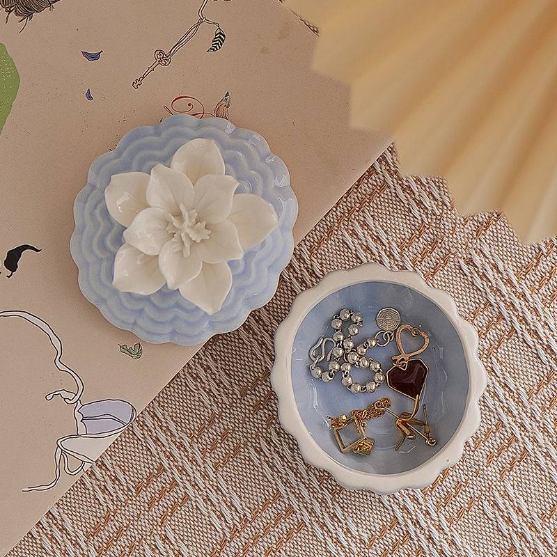 非遗陶瓷手捏花朵首饰盒储物罐饰品戒指项链盒收纳盒桌面摆件送礼