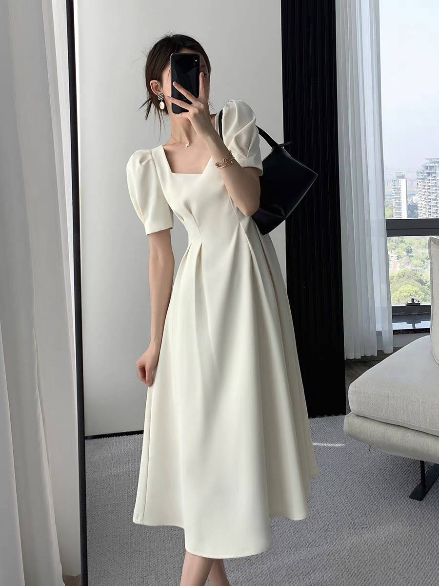 气质超仙白色法式气质收腰显瘦长裙