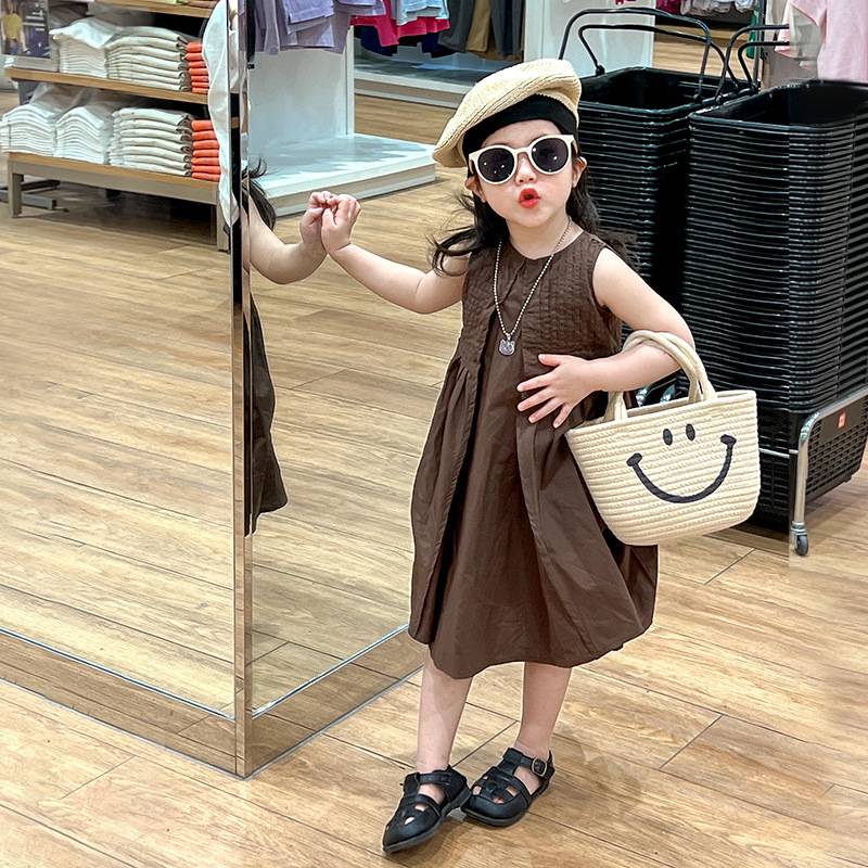 韩版童装2023夏季新款连衣裙休闲无袖纯色连衣裙气质洋气公主裙