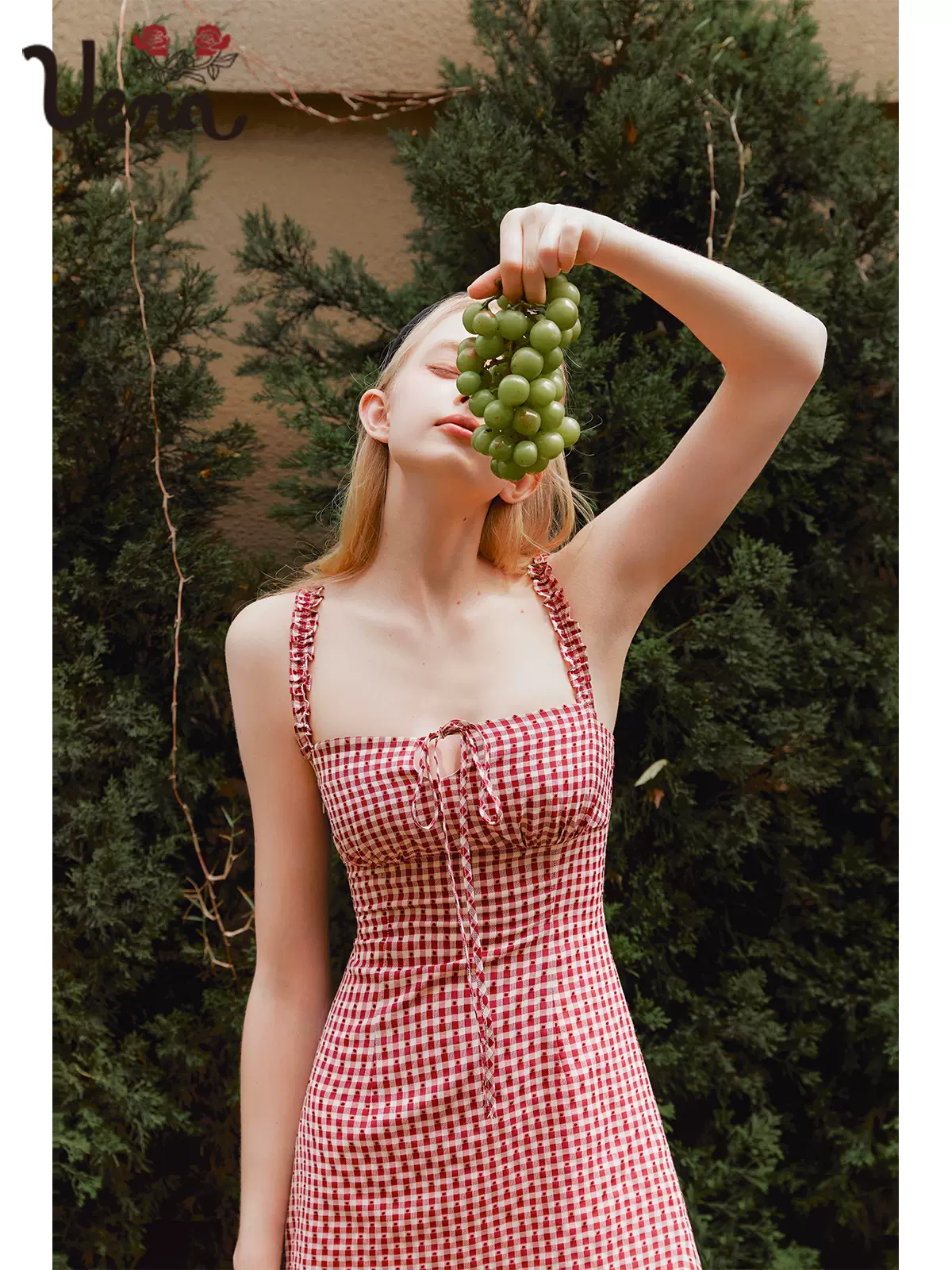 【雾都少女】甜美收腰显瘦赫本风小众设计感格子吊带连衣裙