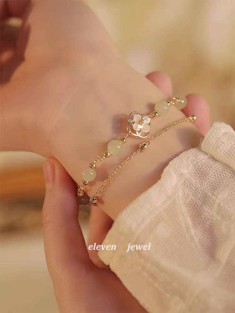 和田玉小花朵手链双层叠戴小众2024年新款女轻奢高级感送闺蜜手饰
