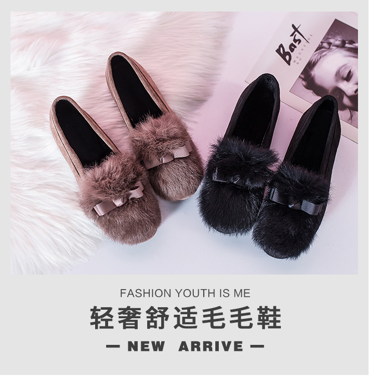 2018冬季新款孕妇鞋平底兔毛保暖休闲鞋韩版百搭单鞋懒人豆豆鞋