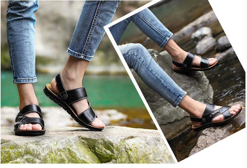夏季凉鞋男2018新款休闲鞋潮软底真皮头层牛皮凉拖鞋防滑沙滩鞋男