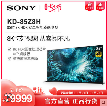 Sony/索尼 KD85Z8H 85英寸 8K HDR 安卓智能液晶电视