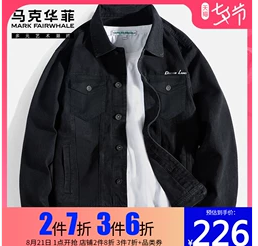 马克华菲牛仔外套男士春秋秋季新款潮流休闲夹克黑色工装男装上衣