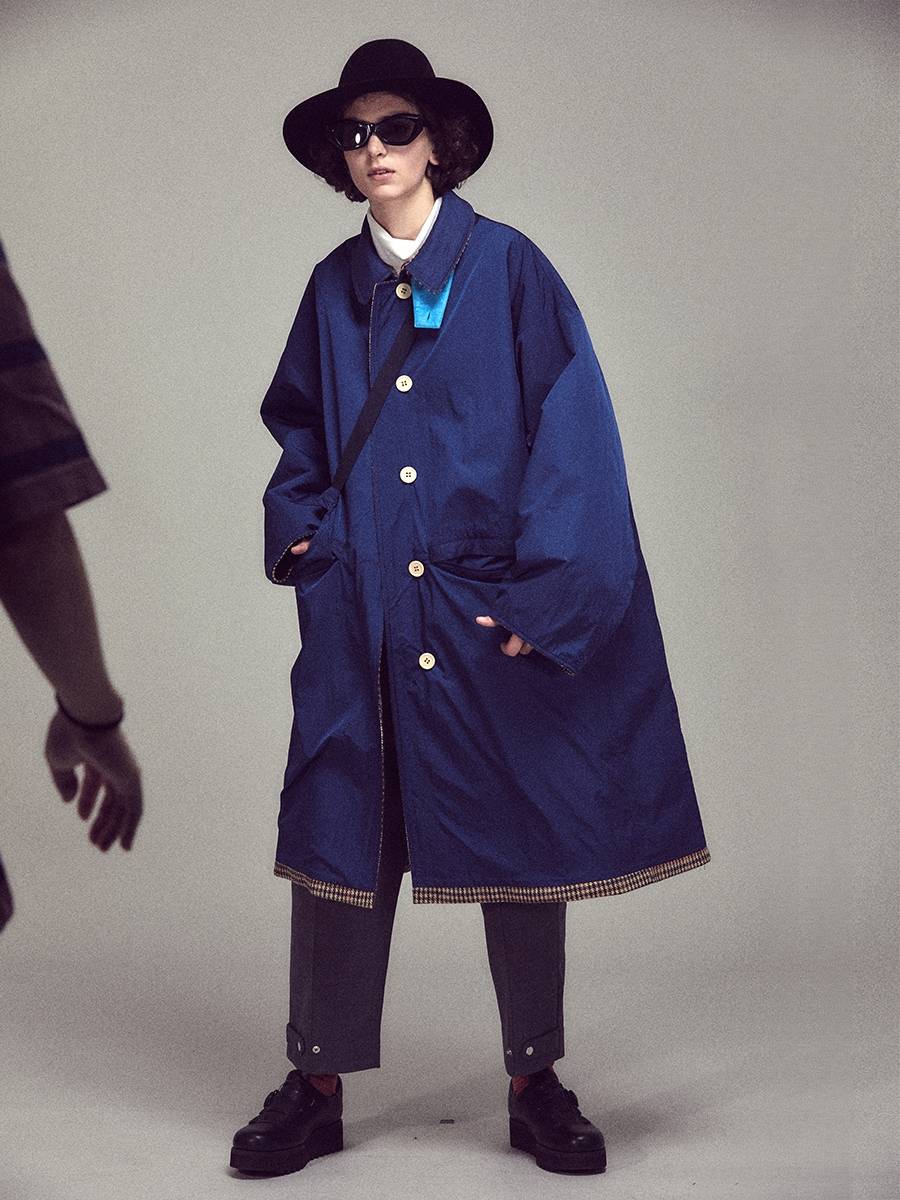 UMAMIISM 复合面料硬挺双面穿袋布变斜挎包千鸟格大衣